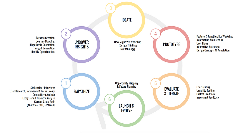 An iterative, human-centric approach encourages us to research, ideate, prototype, test, fail fast, validate and learn quickly. Making assumptions is a dangerous and costly game.